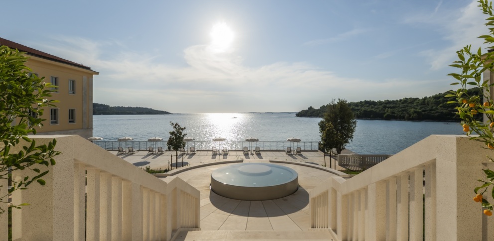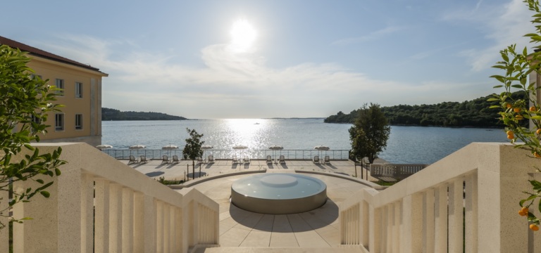 Masivne kamene fasade i obnovljeni drveni detalji savršeno se stapaju s elegantnim staklenim površinama koje otvaraju poglede na more iz gotovo svakog kutka. Interijeri odišu decentnim pastelnim nijansama i detaljima koji pričaju priču o vojnoj i pomorskoj baštini Pule.