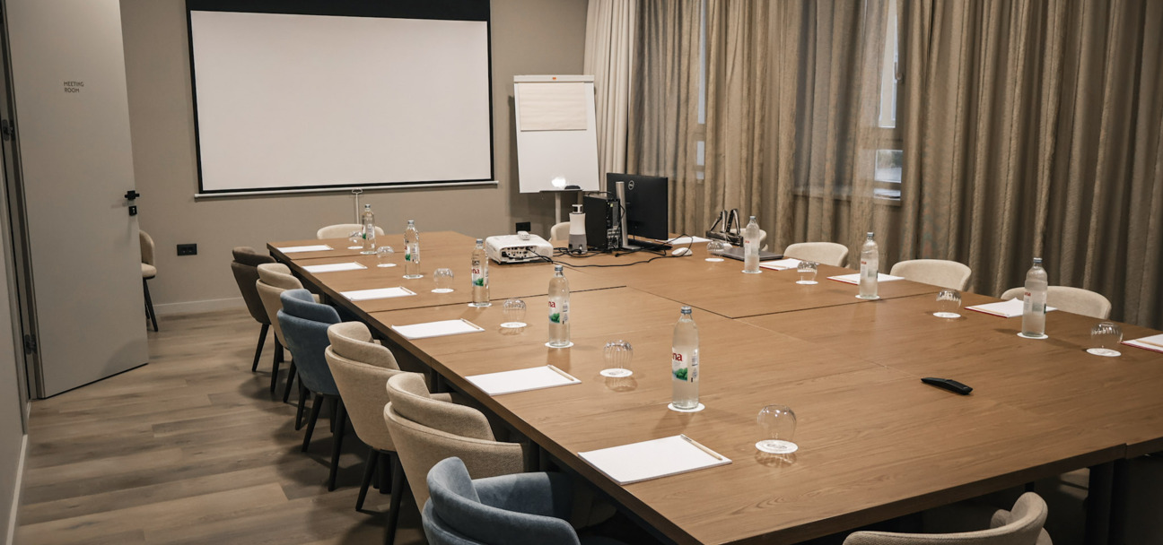 La sala Heritage offre un ambiente tranquillo e funzionale per incontri aziendali di piccole dimensioni. Situata nella parte storica dell’hotel, conserva un’atmosfera di calore ed eleganza discreta, con tutto il necessario per un lavoro efficiente.