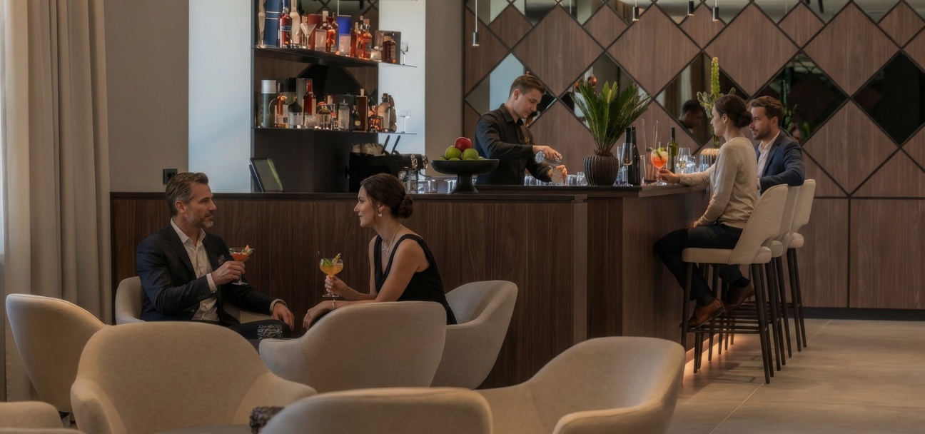 Nelle immediate vicinanze si trova il lobby bar, perfetto per conversazioni informali e brevi pause tra un incontro e l’altro.